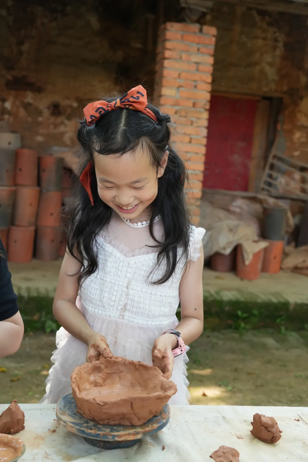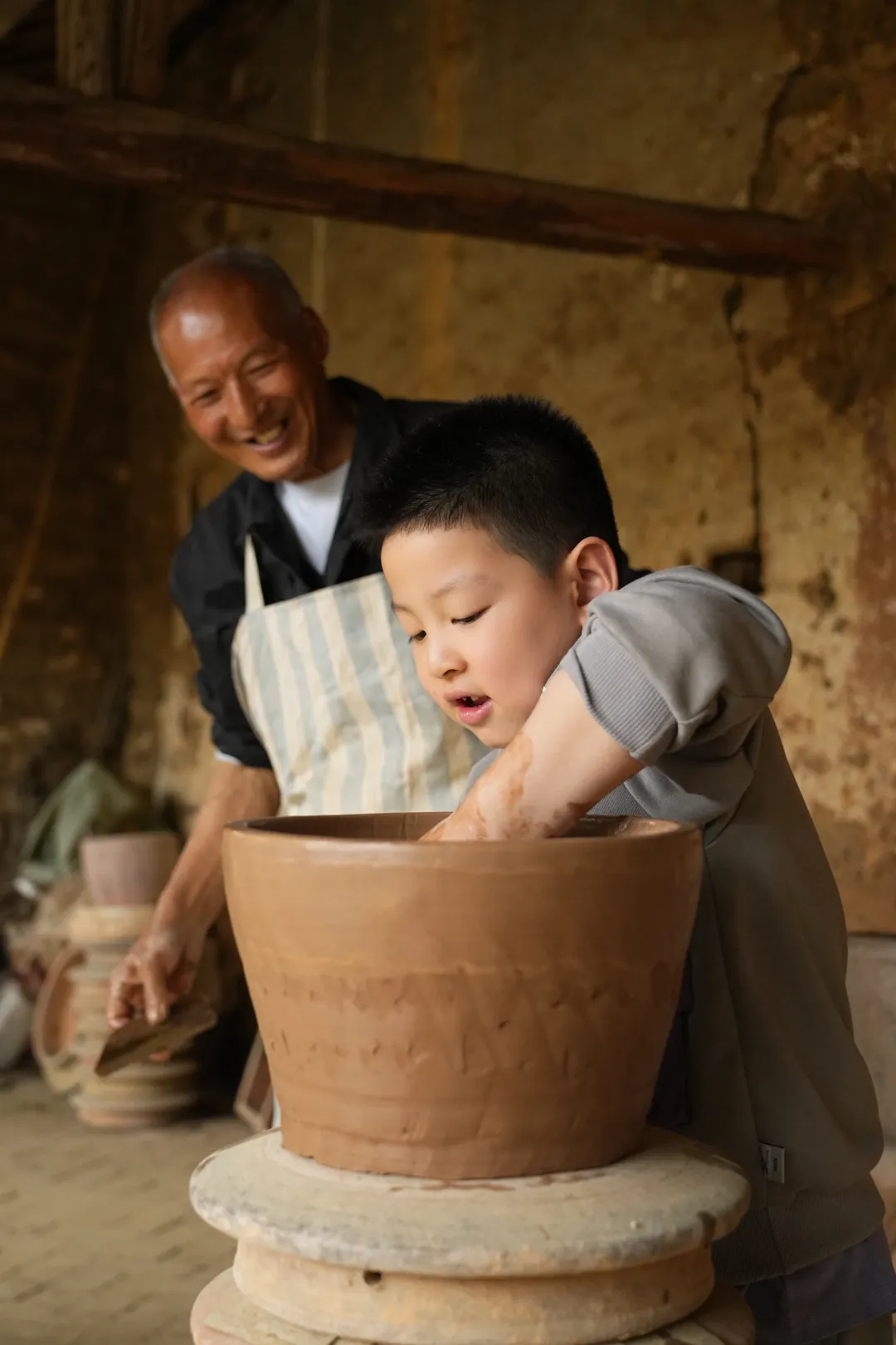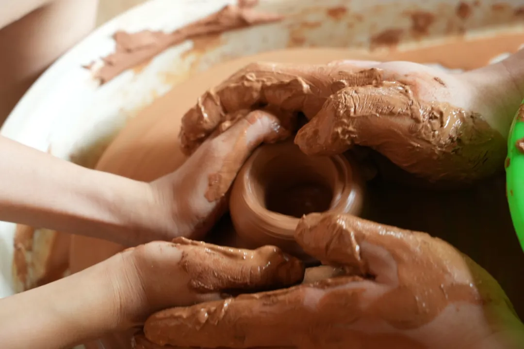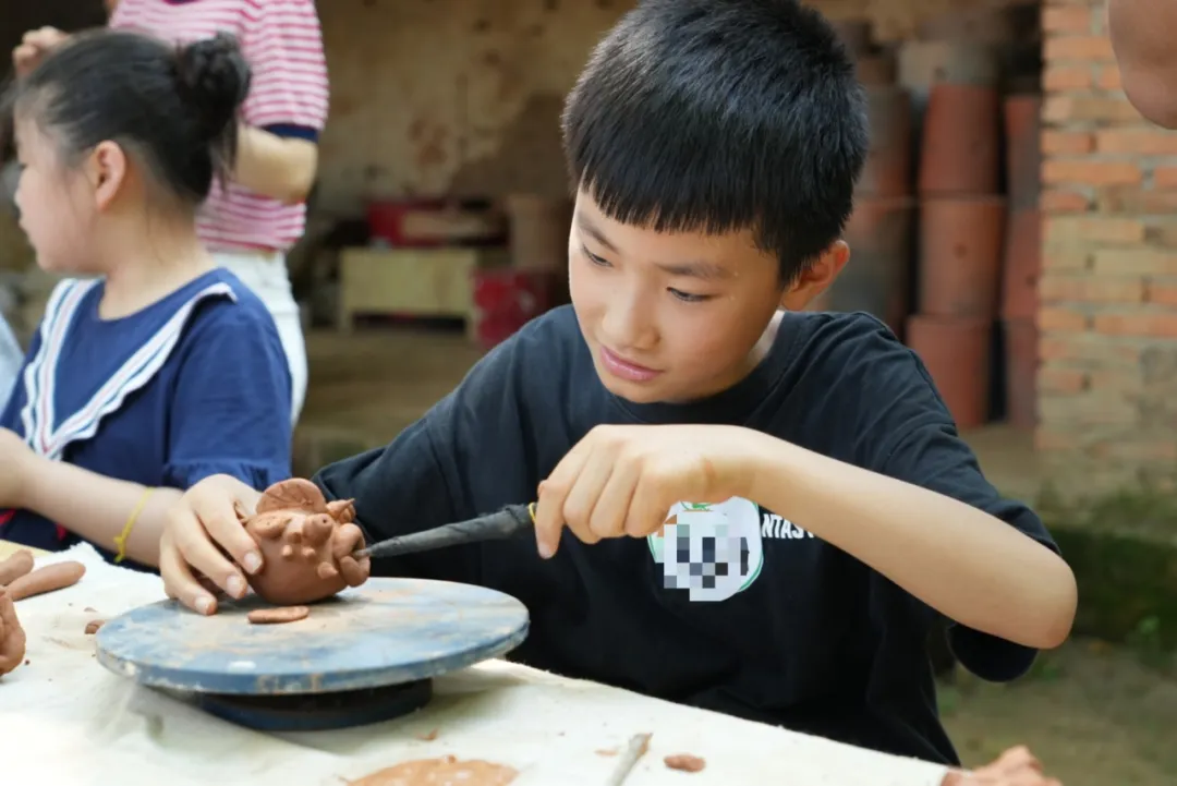 孩子们还要学习盘条与拉胚两种核心技艺,亲手体验泥土幻化成器的神奇。
