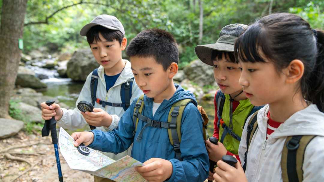 九峰山,意志与毅力的挑战。出发前,导师教孩子们认识地图、使用指北针,在起点就规划好今天的徒步路线。