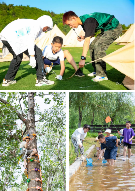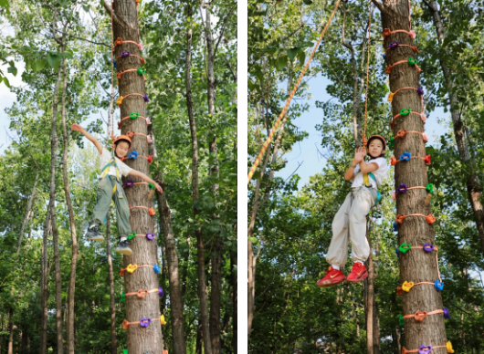 攀树挑战——专业保护绳拴好,导师在下面加油,孩子咬咬牙,一步一步往上爬,到顶那一刻,自己都觉得自己了不起。