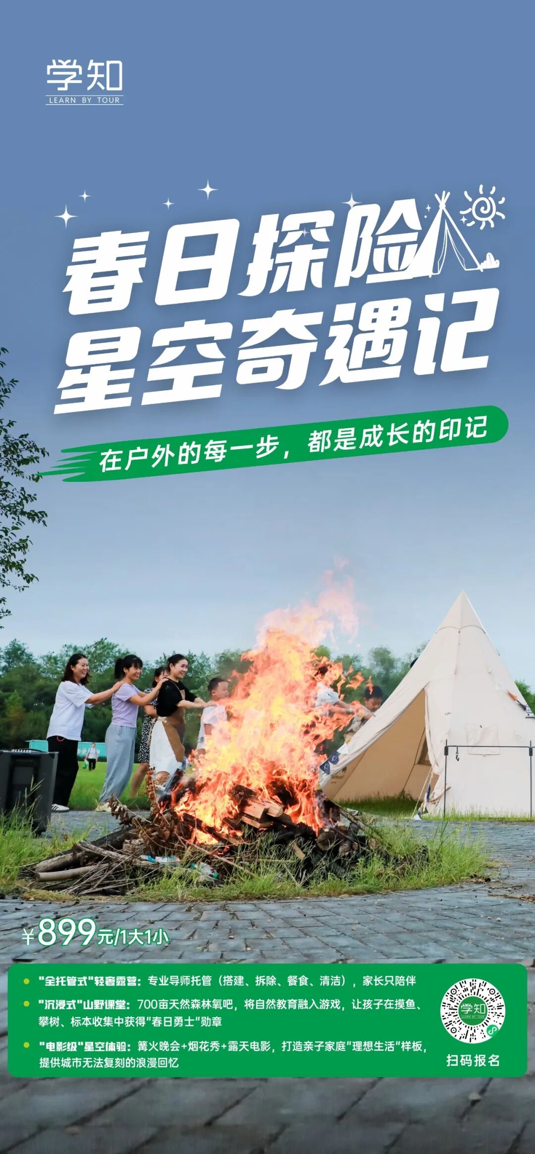 2天1晚春日探险星空奇遇夜,我们负责全托管,你负责陪孩子,看一次烟花。