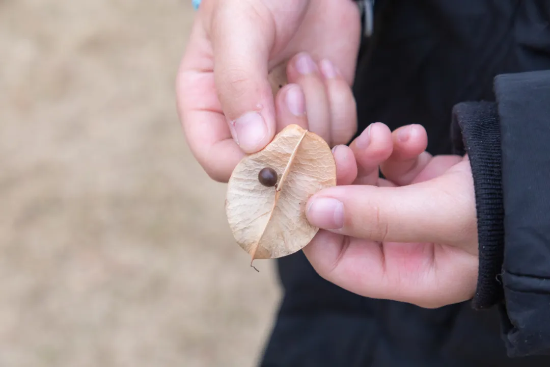 亲手为捡到的拐枣、皂荚、无患子、栾树灯笼、罗汉松的“小和尚” 等神奇秋果,制作专属的“自然观察笔记”,将知识带回家。