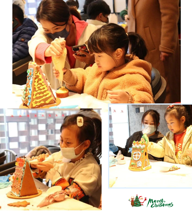 今年的圣诞DIY很香:我们给每个家庭都准备了进口淡奶油、彩色糖霜、糖珠、圣诞小饼干……「制作姜饼屋」。