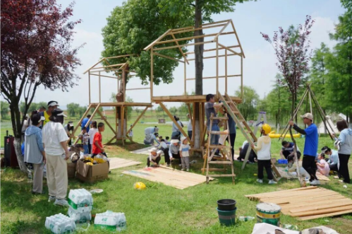 孩子和家长组成施工小队,在营地里一起犯错、一起调整、一起完成。