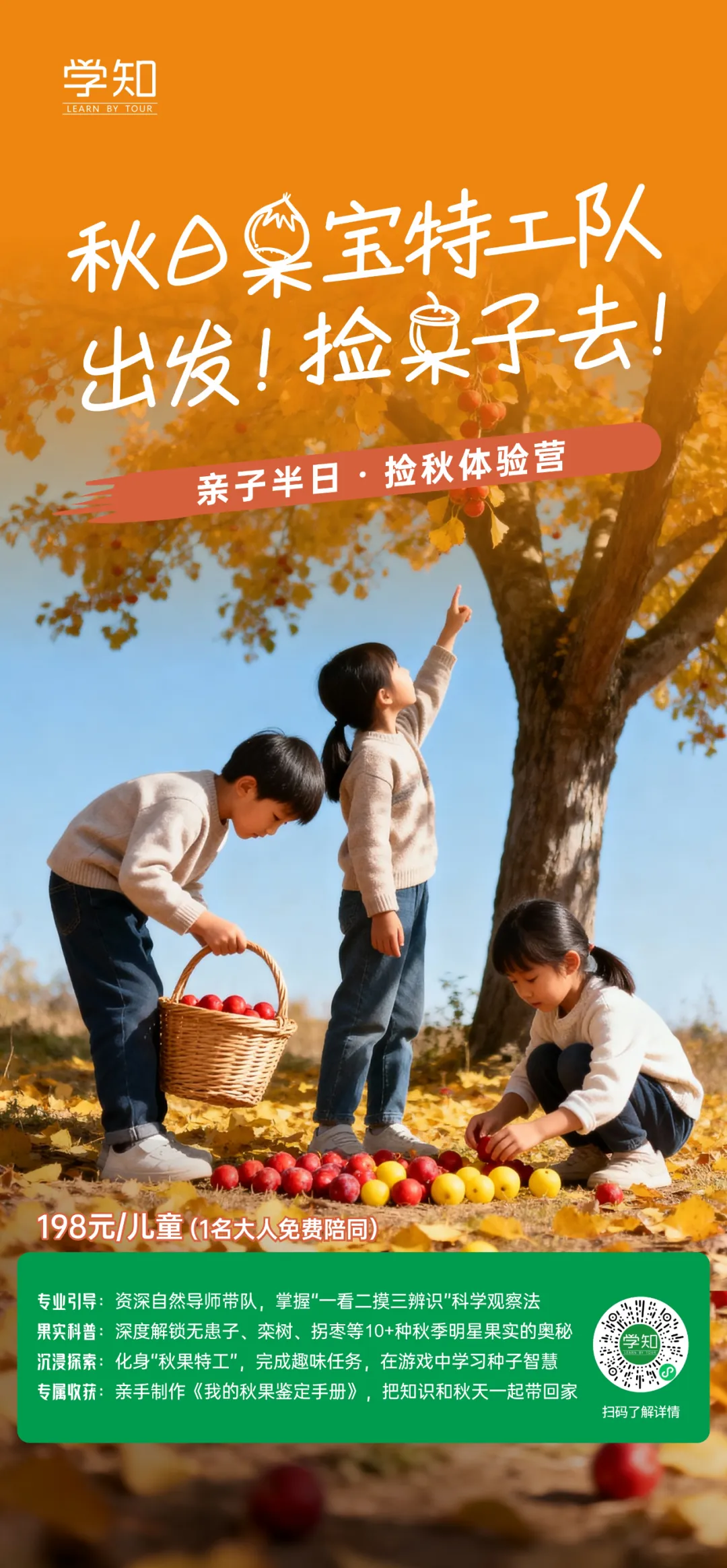 现在,就让孩子化身「秋日果宝特工队」的一员吧!跟我们出发,一起解锁“捡果子”的终极奥义——不止于捡,更在于识。