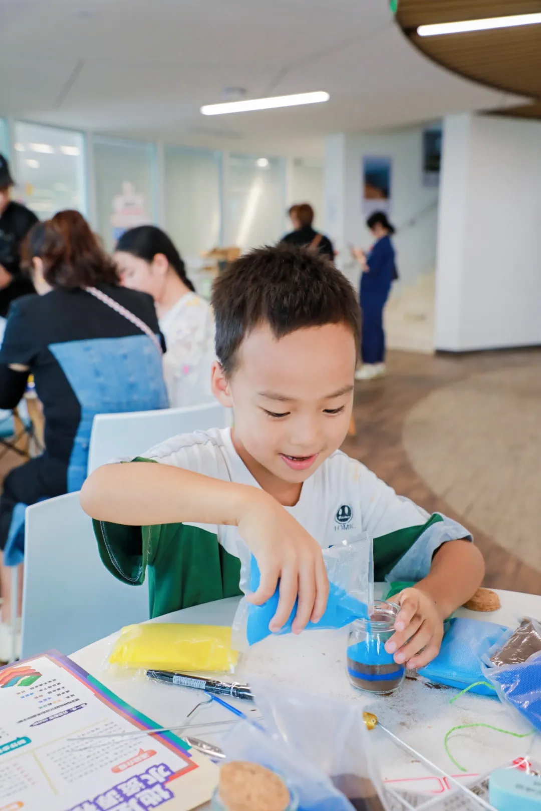 最后,孩子们会动手制作地层水资源模型,模拟自然地下水的储存与净化原理。