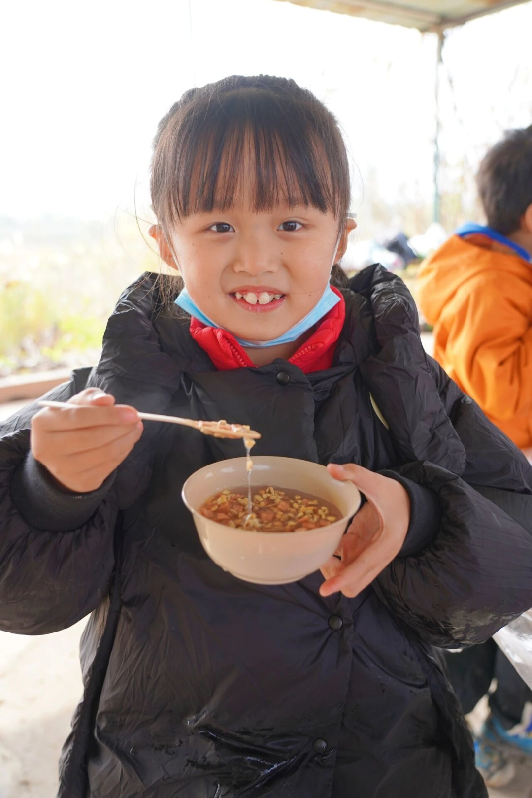 挖出来的藕,会被带回基地,和老师一起清洗、切段、煨汤。孩子喝完的那口“好甜”,是冬日最温暖的声音。(藕汤会根据实际情况供应)