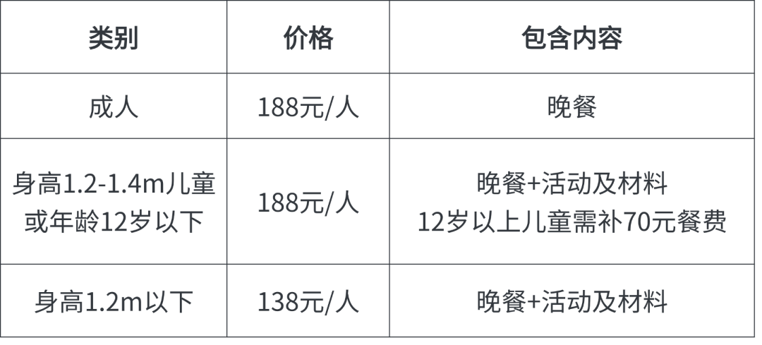 💴 费用包含 | 儿童手作、自助晚餐、入场及全部环节参与、此档期手作为糖霜绘制姜饼屋材料费用等