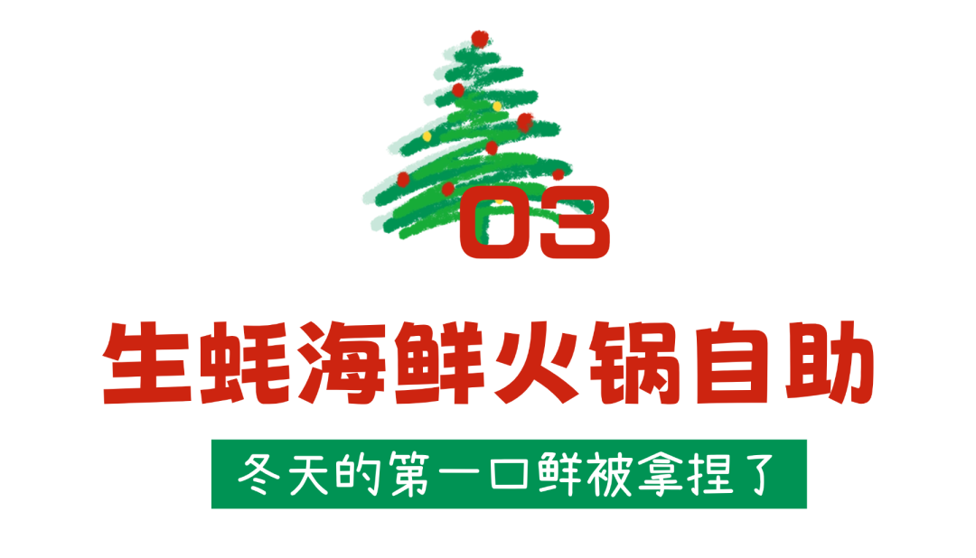 在这里,孩子有孩子的快乐,甜品区铺得像一座“小型圣诞糖果山”。大人有大人的满足,火锅、海鲜、热食、自助台层层叠叠,一顿饭可以吃出三倍的幸福值。