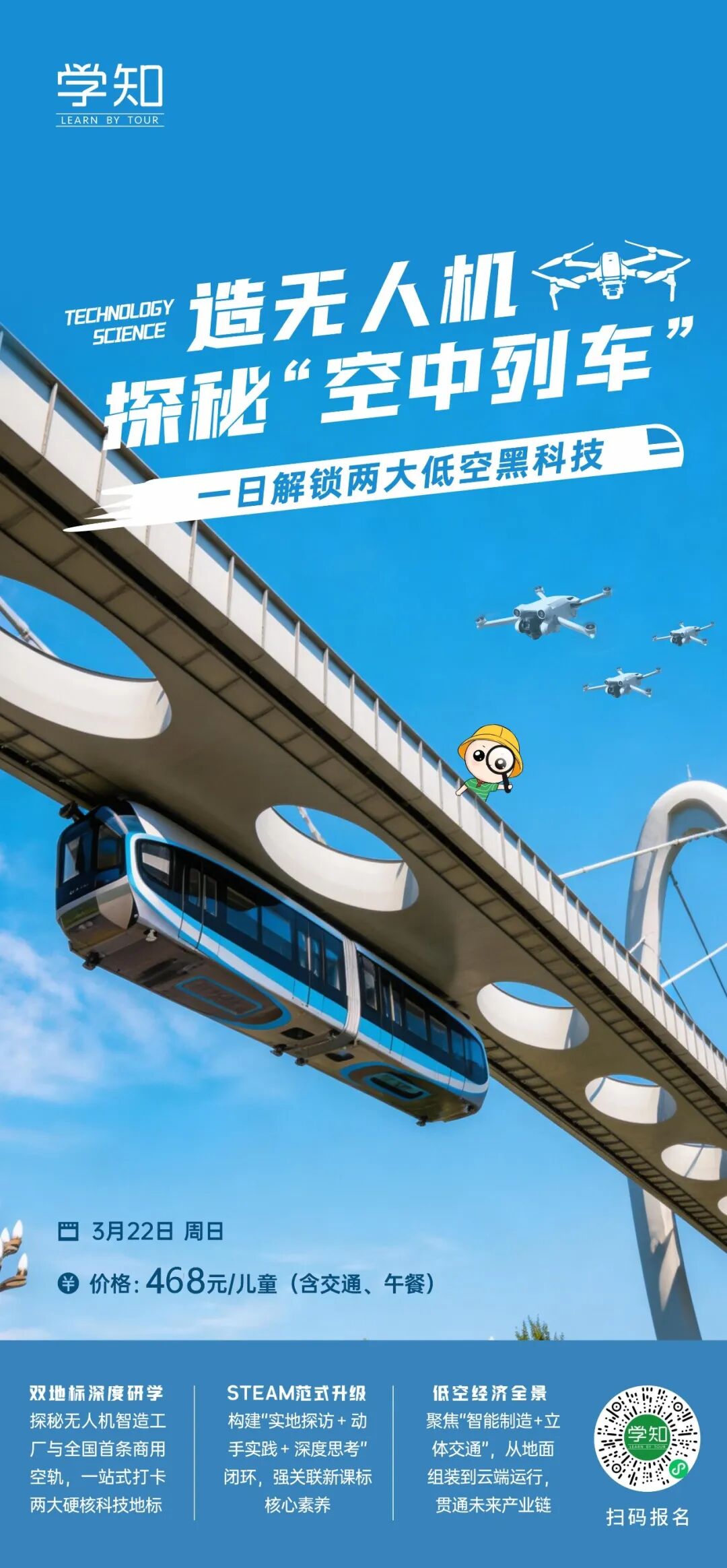 深入武汉光谷“低空经济”核心腹地,构建“无人机研发+立体交通运营”全链条认知。深度直击光谷硬核科技矩阵,1天打卡电鹰科技基地、光谷空轨检修库、光子号列车等3大科技地标。从地面设计到云端穿梭,让孩子化身“小小航天师”,亲手解锁未来城市的立体密码。
